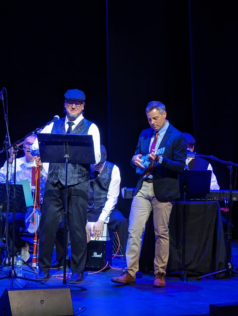 We were so happy and lucky to be able to perform for the opening of the new Nashua Center for the Arts on April 1st, 2023. The event was sold out, and we had the pleasure of inviting Sean McDonald of WMUR-TV, anchor and Chronicle host onstage for our songs. Truly a high point in Ukestra’s long and diverse history!